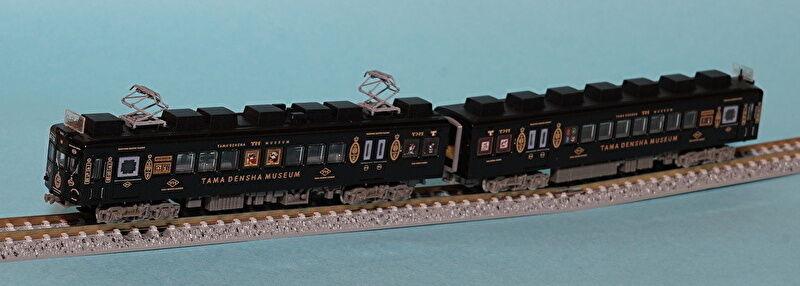 模型は、トミーテックの鉄道コレクションの車両をNゲージ化したもので、1両には別売りの動力ユニットを組み込み、もう1両は別売りの走行用パーツセットでトレーラー車両にしています。
